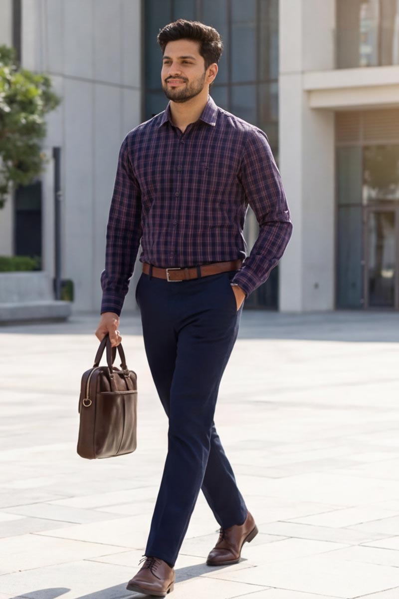 Elevate your style with our sophisticated plaid button-down shirt. This versatile piece seamlessly transitions from office to evening, making it a must-have for the modern professional.
