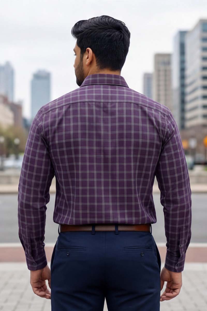 Elevate your professional wardrobe with our sophisticated purple plaid dress shirt. This stylish piece combines classic design with modern flair, perfect for the urban professional who values both style and comfort.