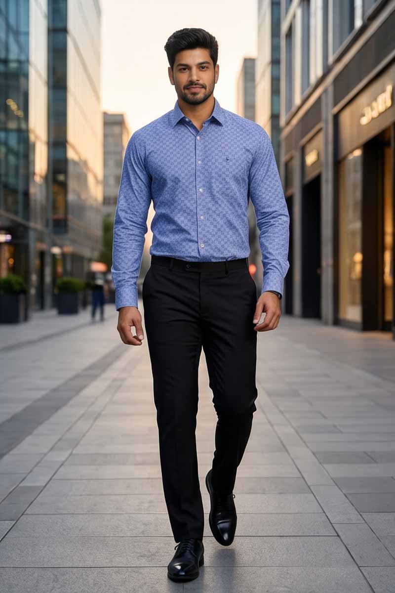 Elevate your professional wardrobe with our sophisticated Printed Blue Shirt