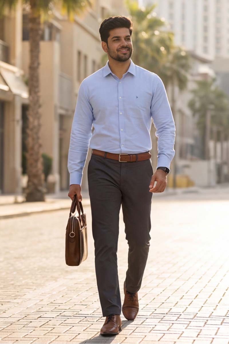 This L-Blue Shirt is a wardrobe essential for the modern professional. Perfect for high-stakes board meetings, corporate presentations, and daily office wear, it pairs seamlessly with tailored trousers and a blazer for a sharp, commanding presence. The smart fit silhouette and full sleeves provide a refined fit for all-day confidence.