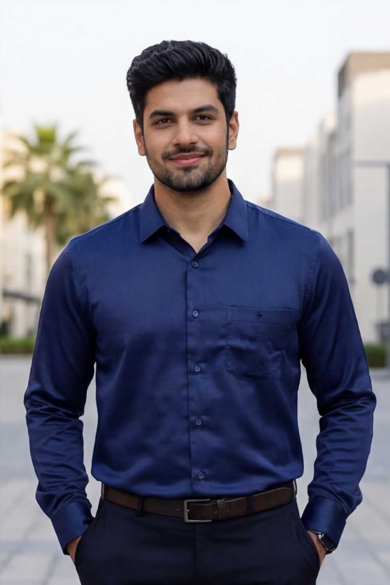 This N-Blue Shirt is a wardrobe essential for the modern professional. Perfect for high-stakes board meetings, corporate presentations, and daily office wear, it pairs seamlessly with tailored trousers and a blazer for a sharp, commanding presence. The smart fit silhouette and full sleeves provide a refined fit for all-day confidence.