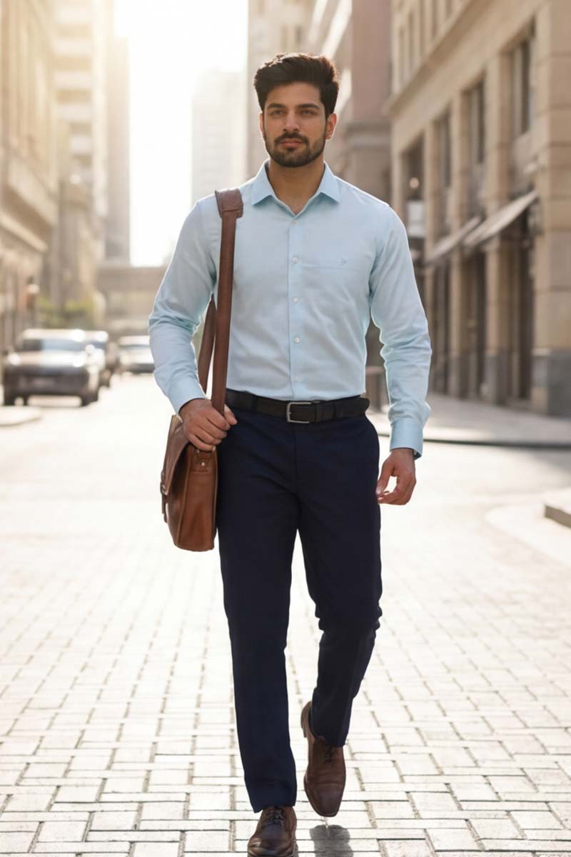 This P-Green Shirt is a wardrobe essential for the modern professional. Perfect for high-stakes board meetings, corporate presentations, and daily office wear, it pairs seamlessly with tailored trousers and a blazer for a sharp, commanding presence. The smart fit silhouette and full sleeves provide a refined fit for all-day confidence.