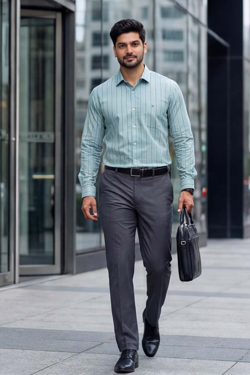 Urban Stripe Formal Shirt – Pastel Green (Smart Fit)