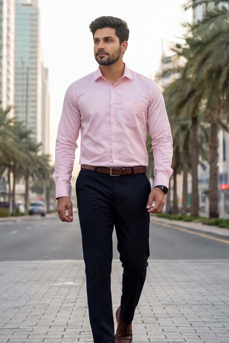 This Pink Shirt is a wardrobe essential for the modern professional. Perfect for high-stakes board meetings, corporate presentations, and daily office wear, it pairs seamlessly with tailored trousers and a blazer for a sharp, commanding presence. The smart fit silhouette and full sleeves provide a refined fit for all-day confidence.