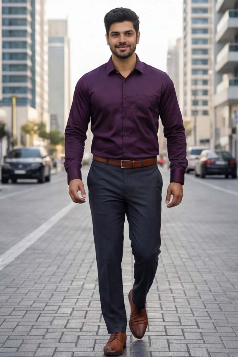 This Wine Shirt is a wardrobe essential for the modern professional. Perfect for high-stakes board meetings, corporate presentations, and daily office wear, it pairs seamlessly with tailored trousers and a blazer for a sharp, commanding presence. The smart fit silhouette and full sleeves provide a refined fit for all-day confidence.